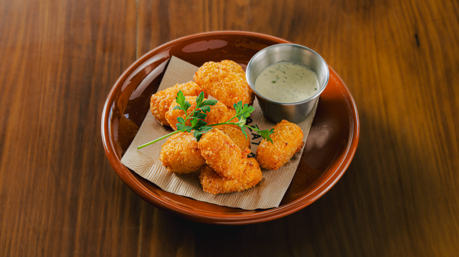 蔵王チーズによる地元産チーズの素使用。ブラックペッパーランチソース添え。