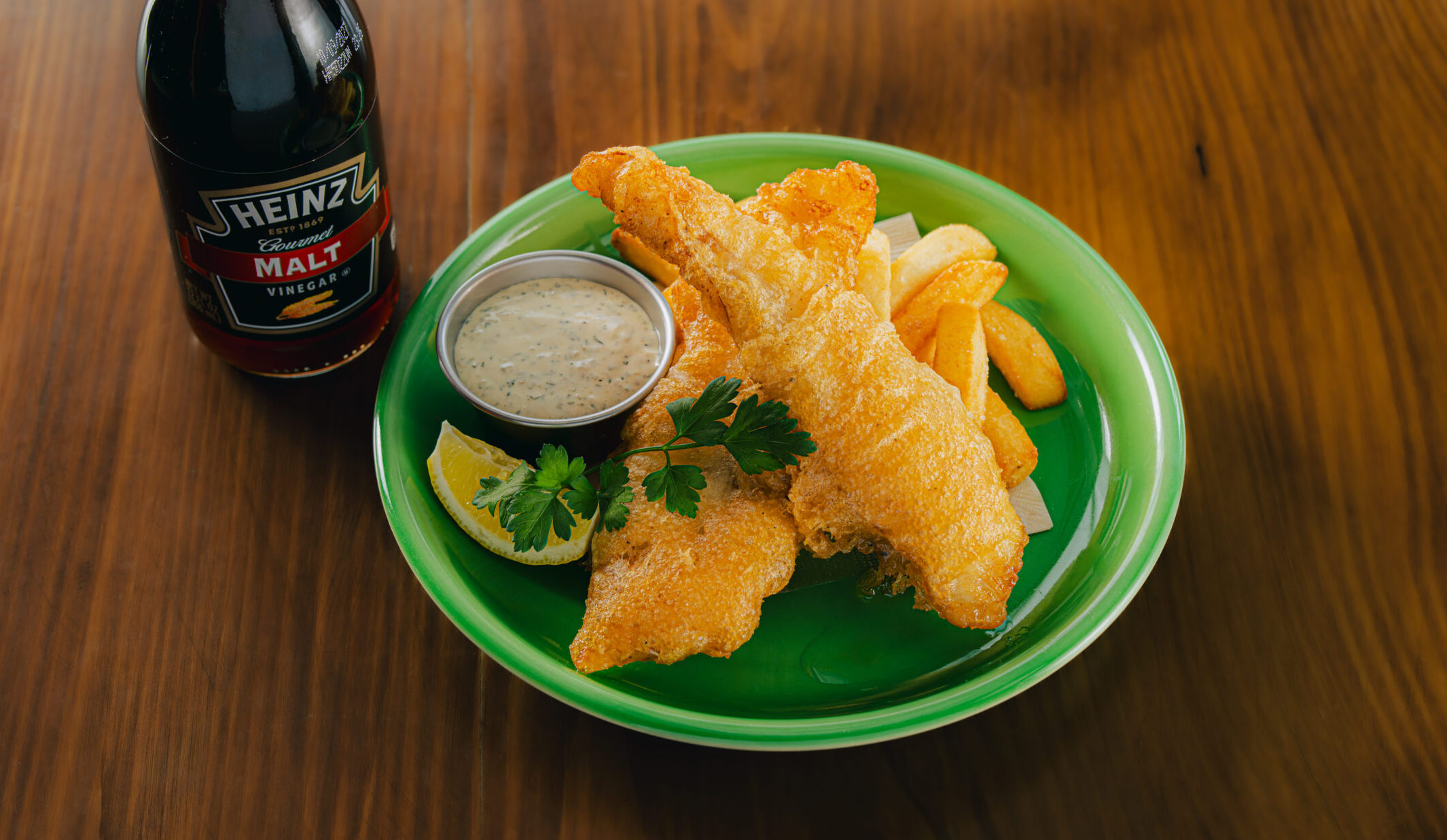 Fish and Chips featuring locally sourced Ishinomaki cod with homemade tartar sauce, thick cut fries and coleslaw