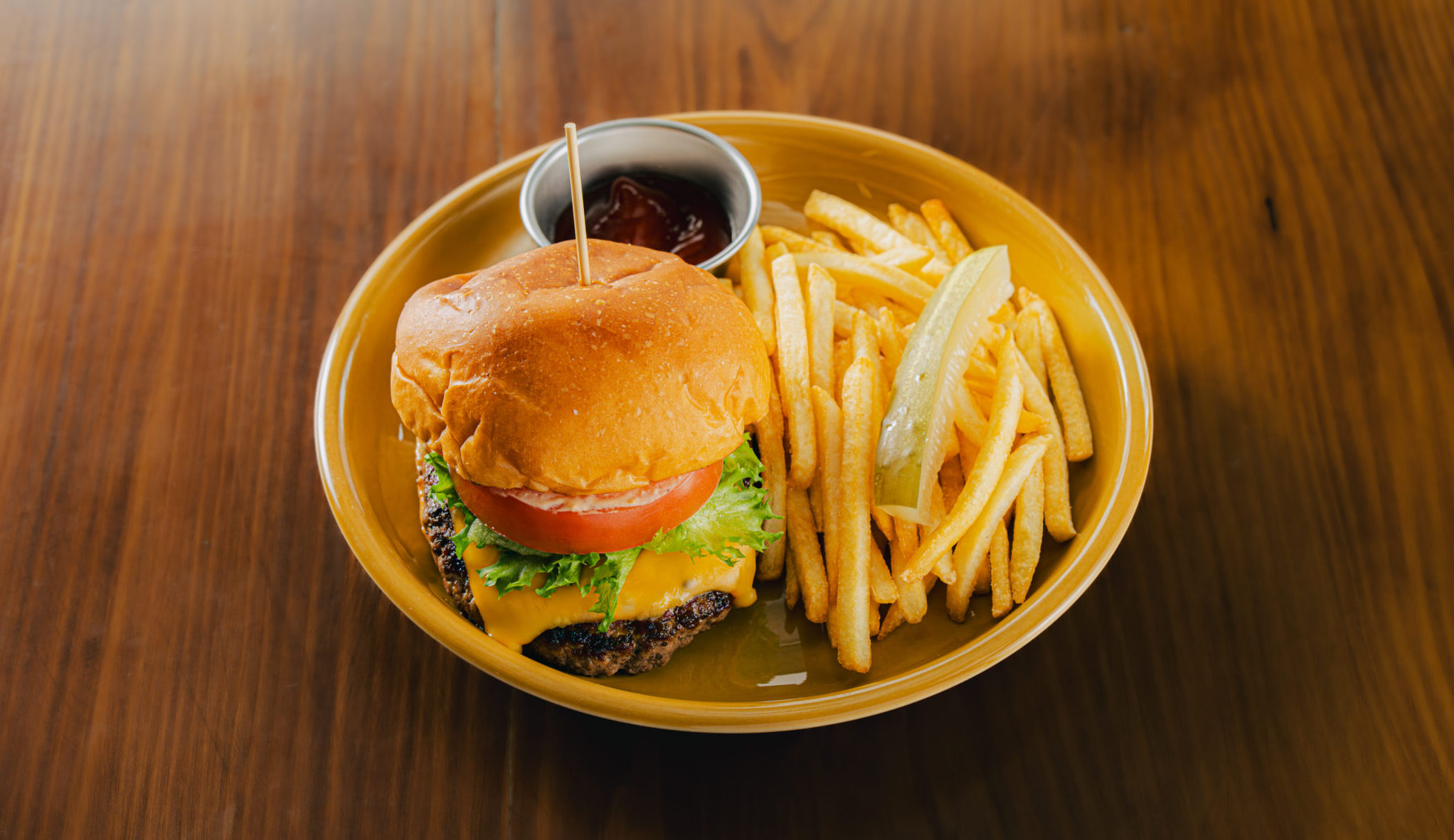 仙台牛パティ・レタス・トマト・オニオン・チェダーチーズ・スペシャルソース/フライドポテト付き